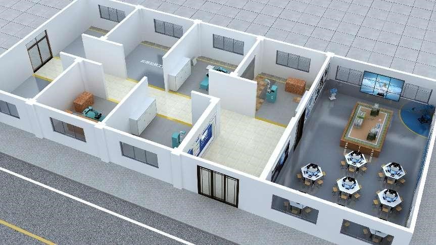 (3)机器人展示与教学中心:集中展示各类建筑机器人设备与技术应用案例,配备多媒体教学设备与课程资源,支持理论教学、技术讲座与参观交流。