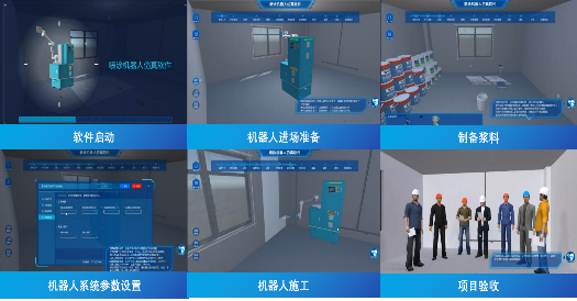 (2)建筑机器人虚拟仿真实训系统:基于虚拟仿真技术,构建施工机器人操作流程、工艺标准、故障处理等三维仿真场景,支持学生进行设备认知、流程模拟、操作训练与考核评价。